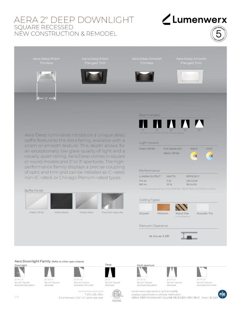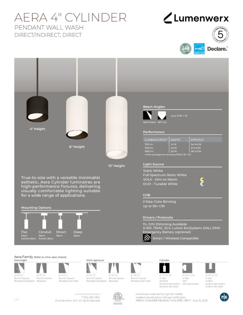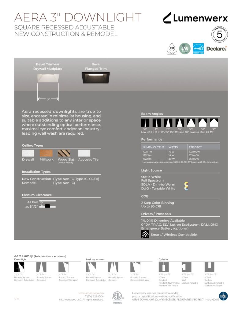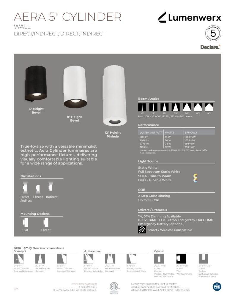 Explore the Aera collection and discover the versatility each fixture offers—unique mounting options, lumen outputs, beam angles, and more.