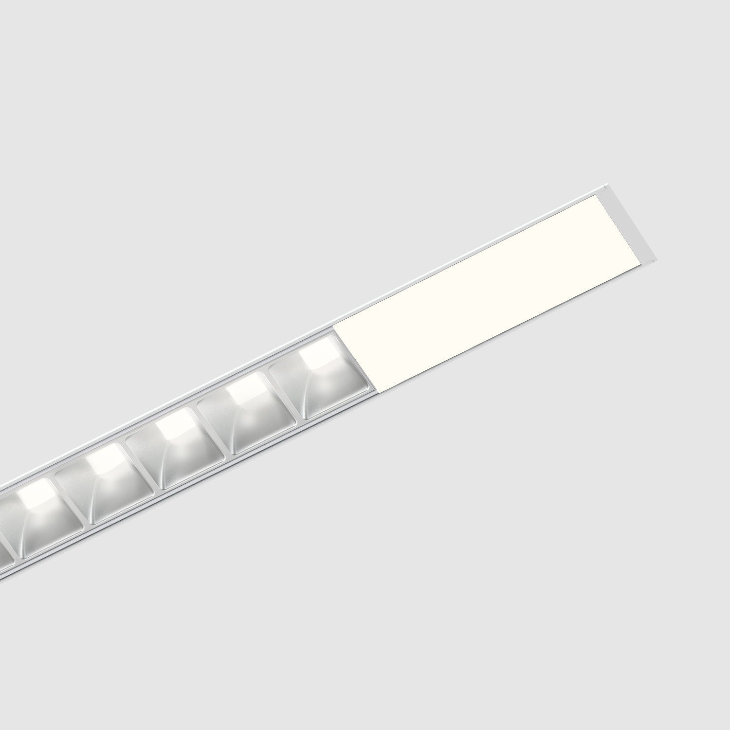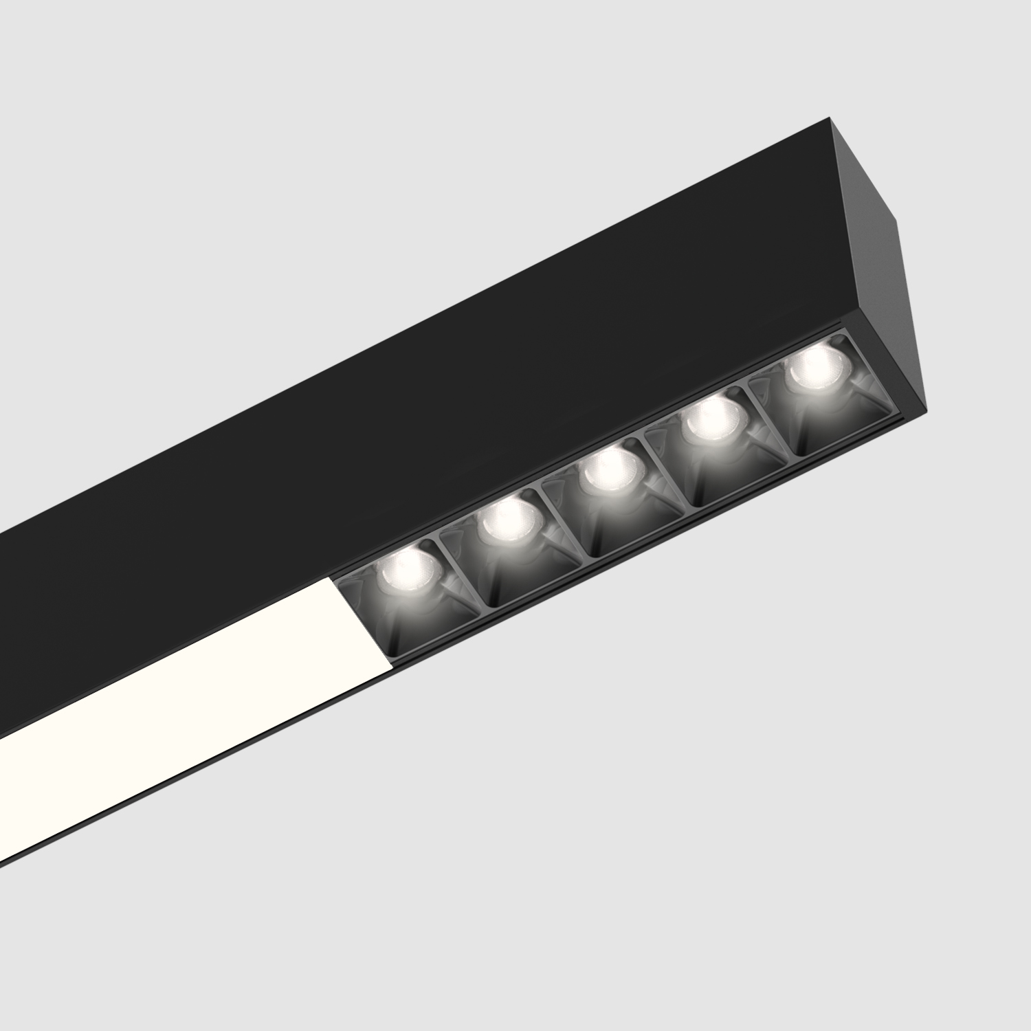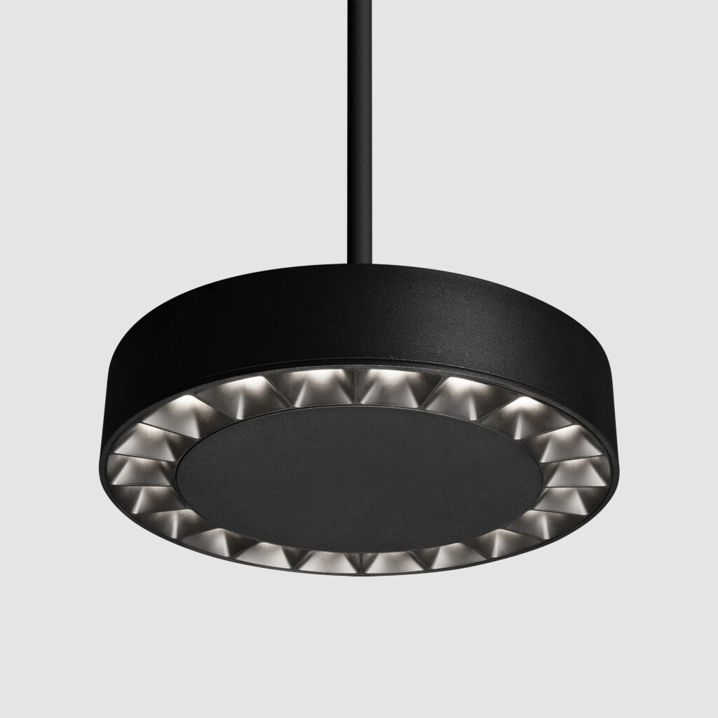 Clusters with soft-edge and sharp-edge beams are available in three baffles styles: square, conical, and hyperbolic, each in five finishes. The conical aperture fits into a separate plate which fills out the linear or planar form and can match or contrast with the aperture finish.