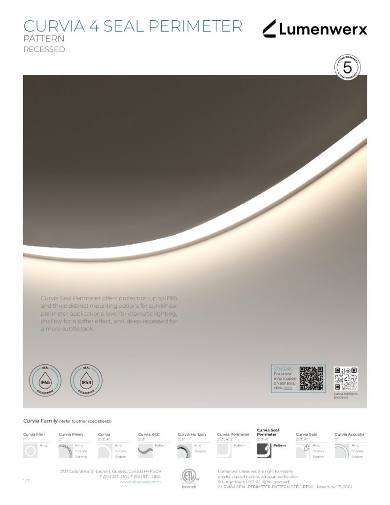Curvia Seal Perimeter offers protection up to IP65 and three distinct mounting options for curvilinear perimeter applications: level for dramatic lighting, shallow for a softer effect, and deep-recessed for a more subtle look.