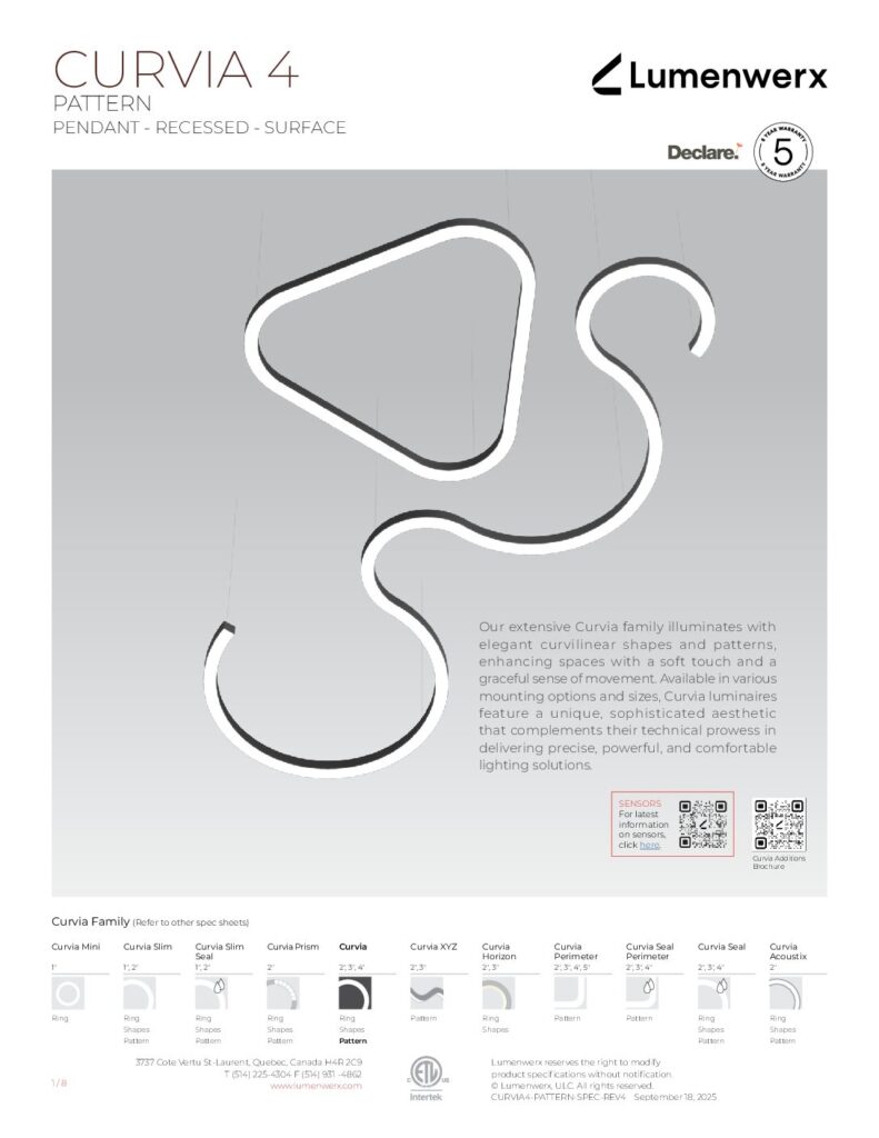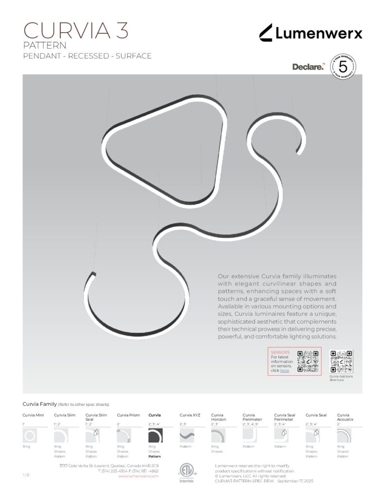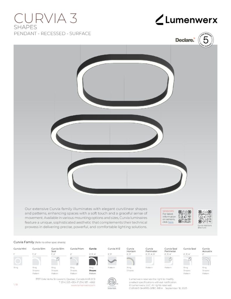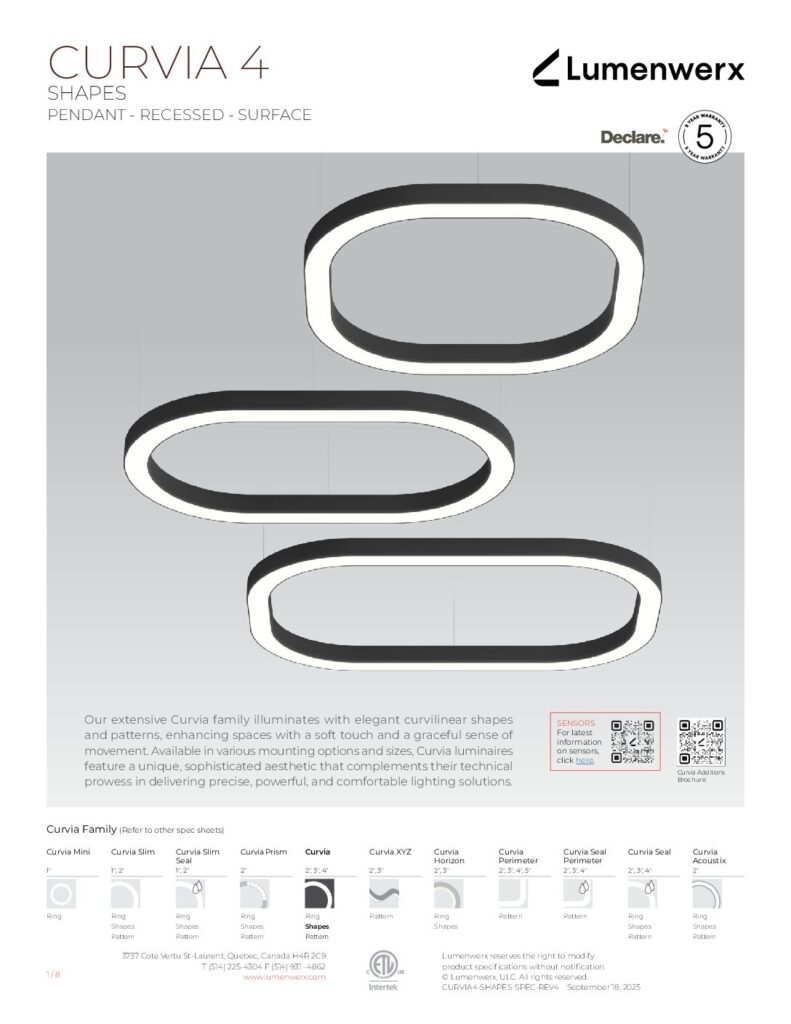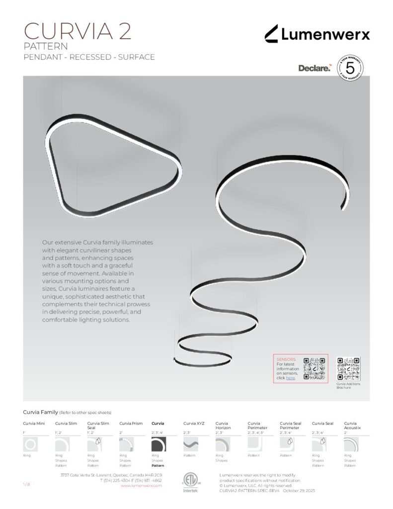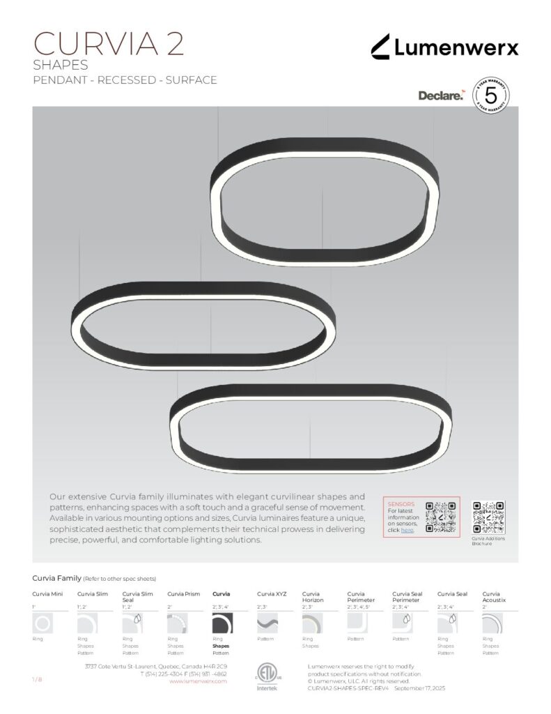 Our extensive Curvia family illuminates with elegant curvilinear shapes and patterns, enhancing spaces with a soft touch and a graceful sense of movement. Curvia Mini Ring luminaires are lightweight and available in 1” widths and diameters ranging from 2′ to 6′.