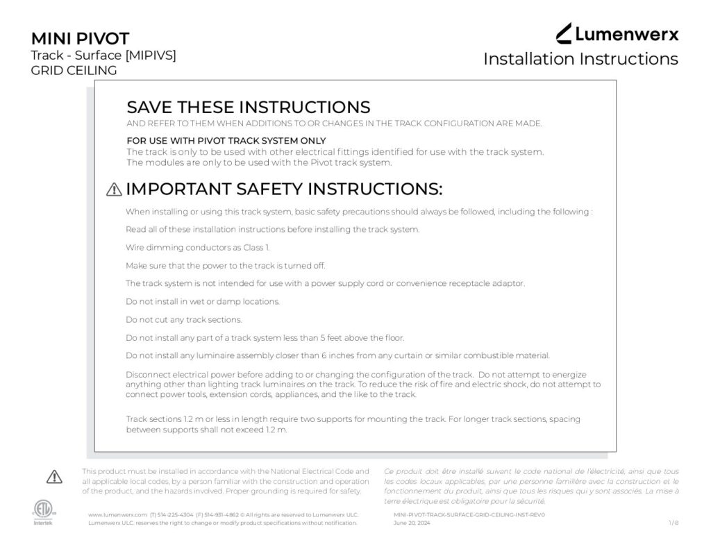 The Mini Pivot Track is low voltage and accommodates the Mini Pivot Track Modules. While offered as a recessed, surface, or pendant-mounted system with all luminaires distributing direct light, the pendant option, in particular, can accommodate modules on both its direct and its indirect sides. The Mini Pivot Track possesses infinite run capabilities in segments of up to 8 feet with smooth transitions at the joint. It can also branch out to create a multitude of shapes, patterns, and effects for various architectural applications.