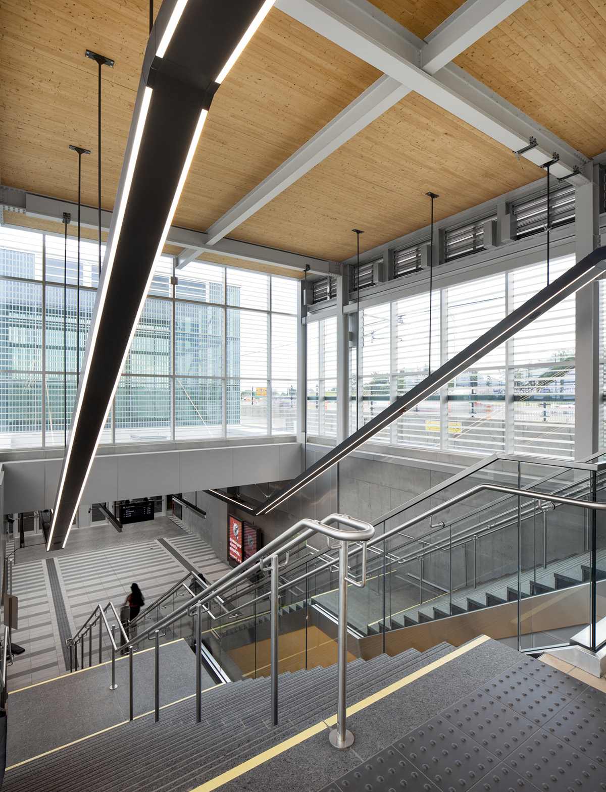 With stations built around a unified design scheme featuring the natural tones of wood and glass, a lighting solution was needed to complement the warmth of the materials and ensure wayfinding was highly visible. Working closely with the architects and designers, Lumenwerx devised a solution based on our VIA product line, selected for its ability to be customized to fit with station architecture.